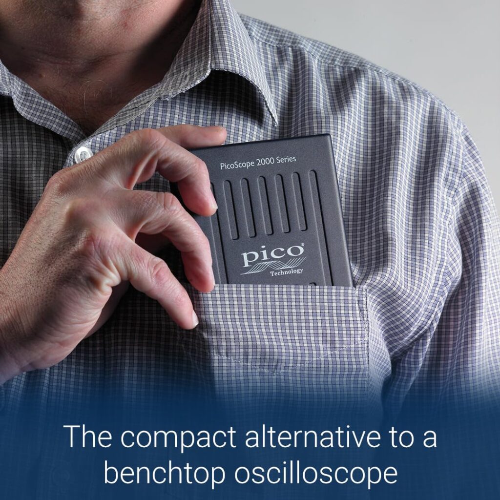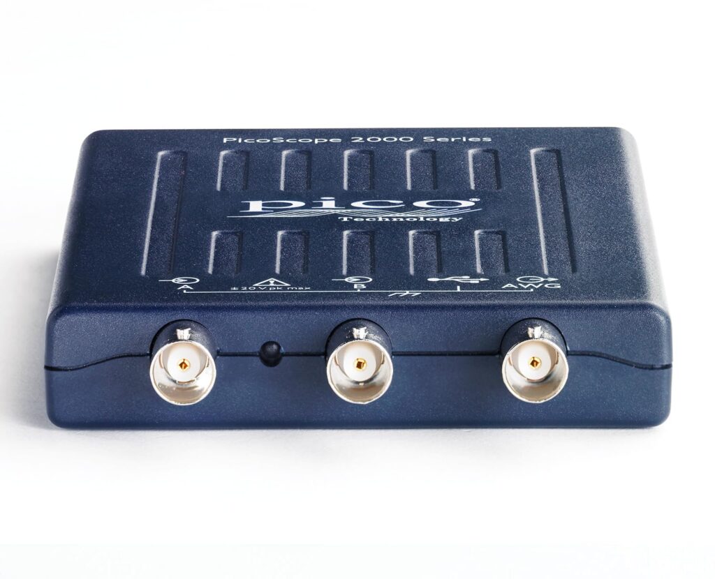 The PicoScope 2204A is the most affordable model in the lineup. It is designed for basic signal visualization and lower-frequency work.